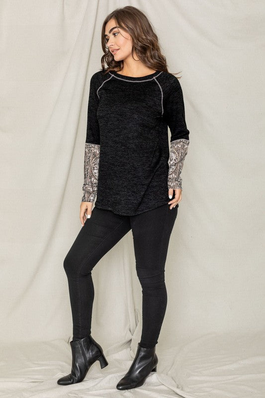Stitch Accent Paisley Cuff Sleeve Tunic